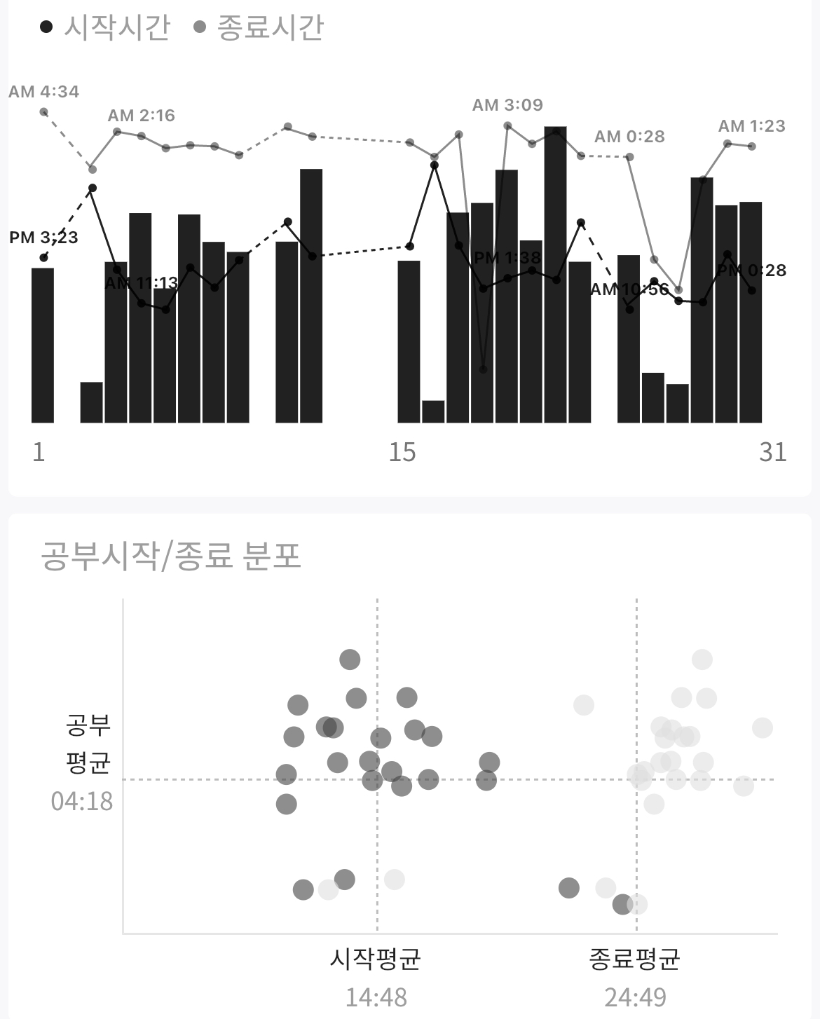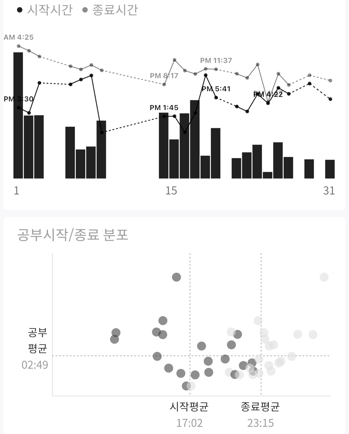 | 총 공부시간 | 평균 공부시간 | |