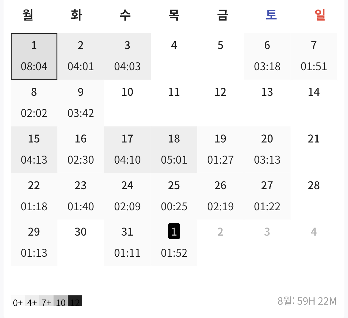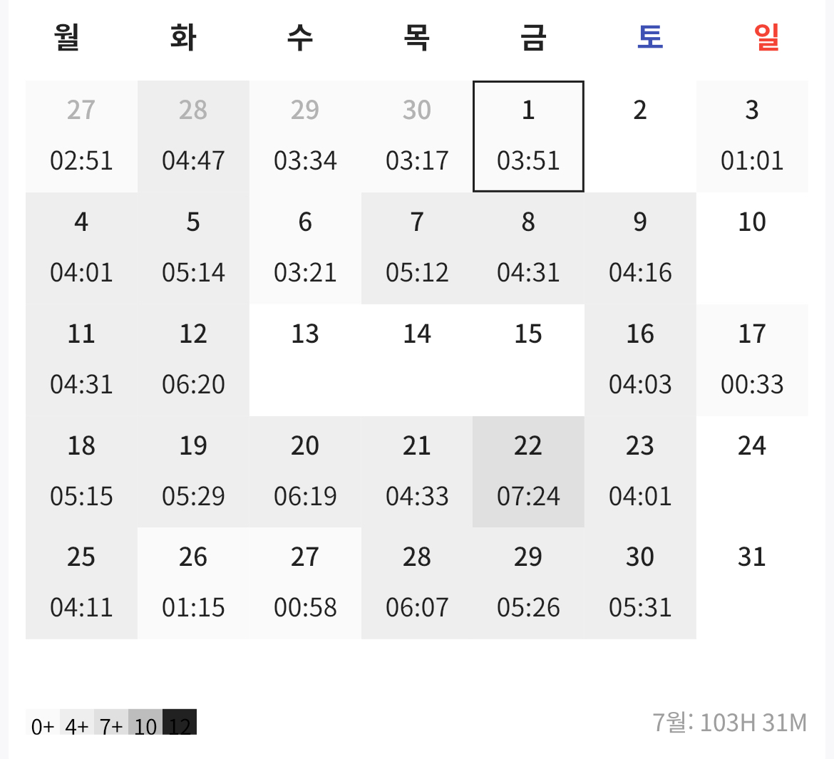 | 7월 | 103:31:00 | 04:18:47 |