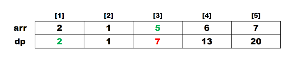 dp배열은 해당 index 까지의 증가 부분 수열 합의 최댓값이다.
