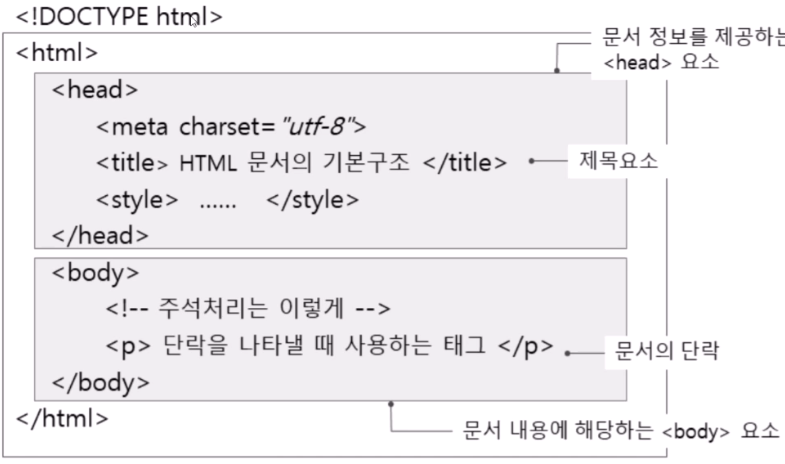 - 문서 시작할 때 <!DOCTYPE html>을 표시함으로써 HTML5 문서 형식임을 선언