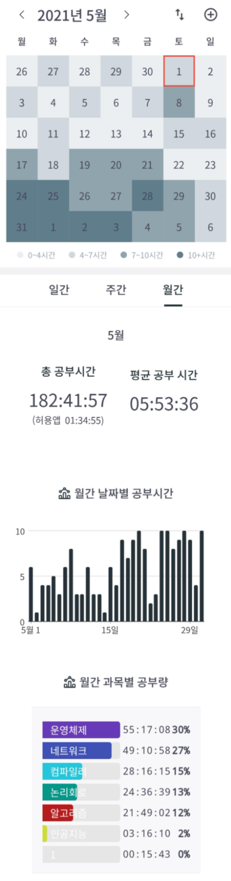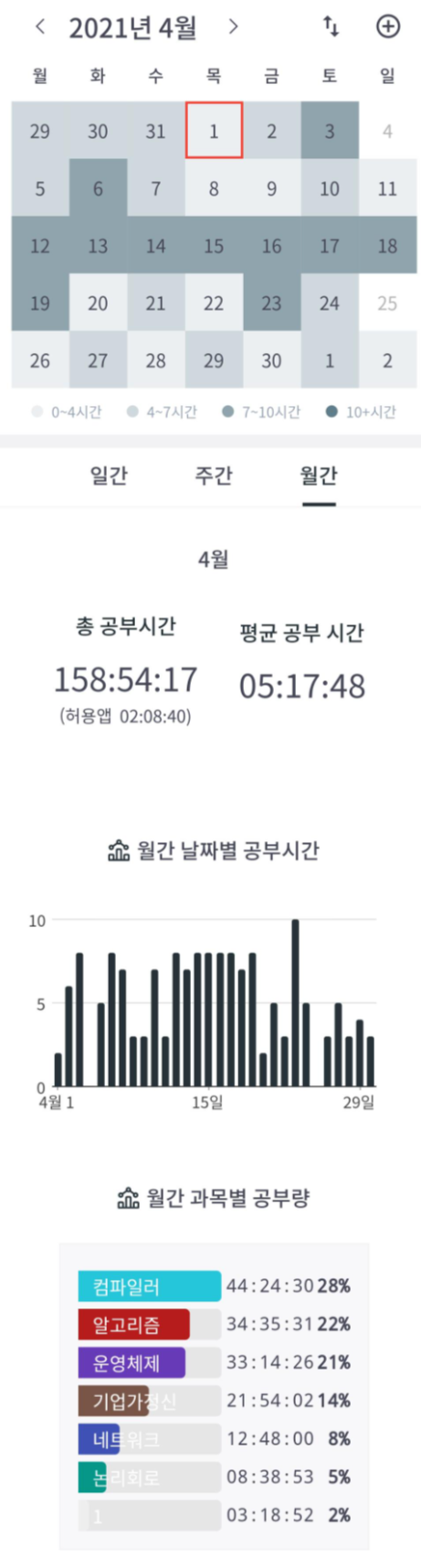 나는 공부할 때 마다 '열품타'라는 어플을 이용해 시간 측정을 한다.