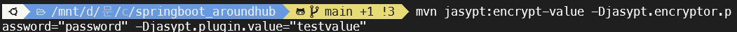 mvn jasypt:encrypt-value -Djasypt.encryptor.password="the password" -Djasypt.plugin.value="theValueYouWantToEncrypt"